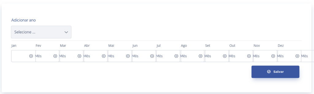 Ao selecionar o ano de referência e os valores dos meses, clique em salvar para adicionar o novo índice do ano.