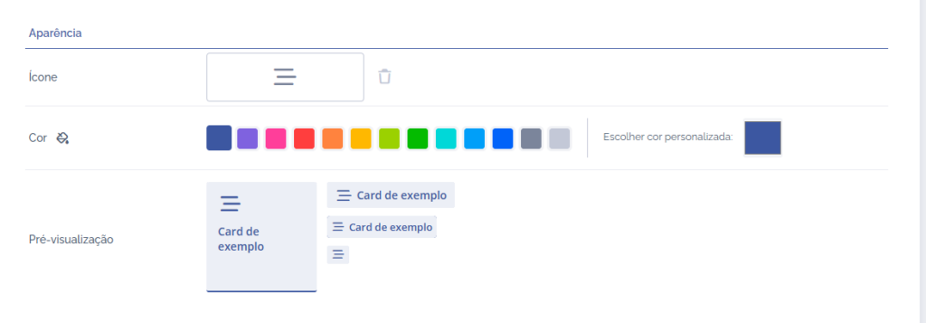 Mostra como ficará o a aparência da sua atividade com base no Ícone e Cor definidos.