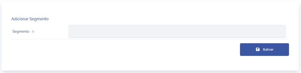 O bloco Segmentos será exibido, podendo adicionar um novo segmento no sistema, clicando no botão Adicionar segmento.