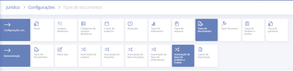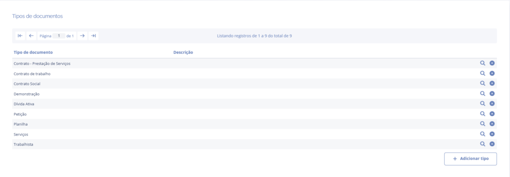 No bloco Tipos de documentos, clique no ícone detalhes do tipo desejado: