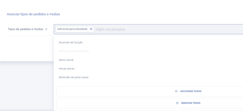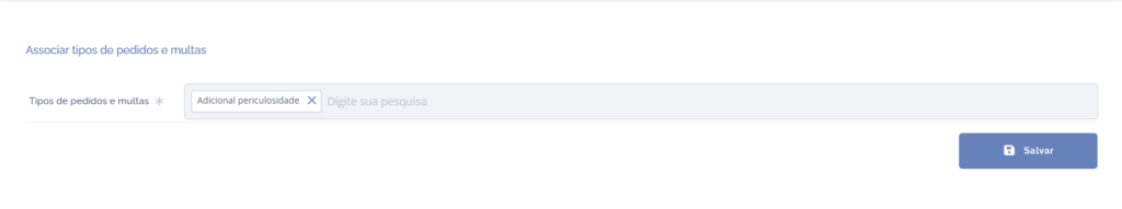 Após selecionar os tipos de pedidos ou multas, clique em Salvar.