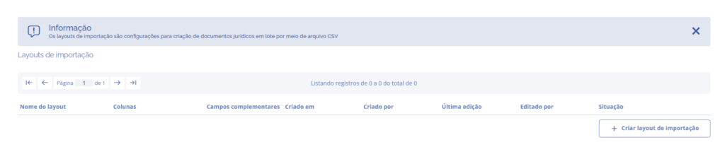 Poderá ser cadastrar novos layouts através do botão “Criar layout de exportação”: