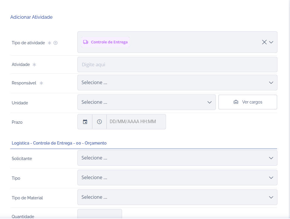 Em alguns contextos, é muito comum que usuários do perfil operacional não precisem criar atividades, pelo fato de elas já terem sido criadas previamente por outros usuários, ou então criadas de forma automatizada pela plataforma. No entanto, o conteúdo a seguir, aborda a criação de atividades de forma manual, isto é, por meio do formulário de criação de atividades.