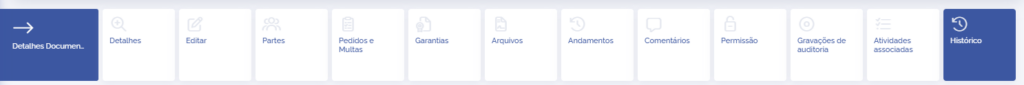 Em detalhes de um documento jurídico, clique no card Histórico: