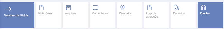 Nesta tela, é possível verificar os eventos existes e adicionar novos eventos, para isso: