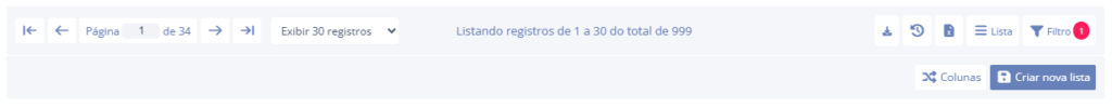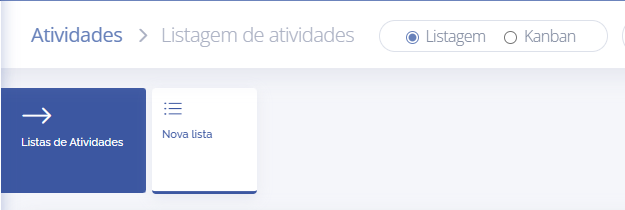 Em listagem de atividades, é possível criar uma nova lista. Para realizar essa operação, clique no ícone Listas e logo em seguida será aberto novos ícones abaixo, dentre eles, o ícone Criar nova lista:
