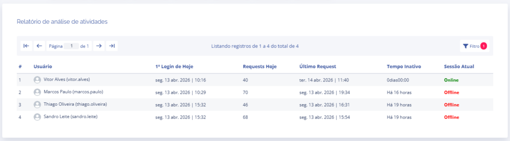 Neste bloco, é possível verificar o relatório diário dos usuários no sistema.