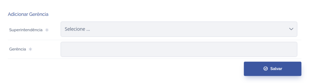 Após definir um nome para a gerência e associar a uma superintendência, clique no botão Salvar para registrar no sistema.